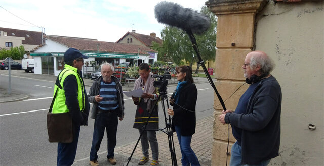 Un étang et une zone humide, une écofête sur le thème bovins-ovins du Gers, un chapeau, des mots tirés au hasard, 2 mn pour improviser devant la caméra...