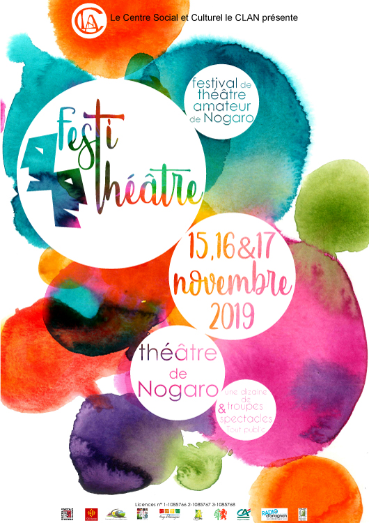 Après le succès de la première édition de ce festival de théâtre amateur, le Centre Social et Culturel le CLAN est fier de vous annoncer les dates de la deuxième édition : vendredi 15, samedi 16 et dimanche 17 novembre 2019 au Théâtre de Nogaro.